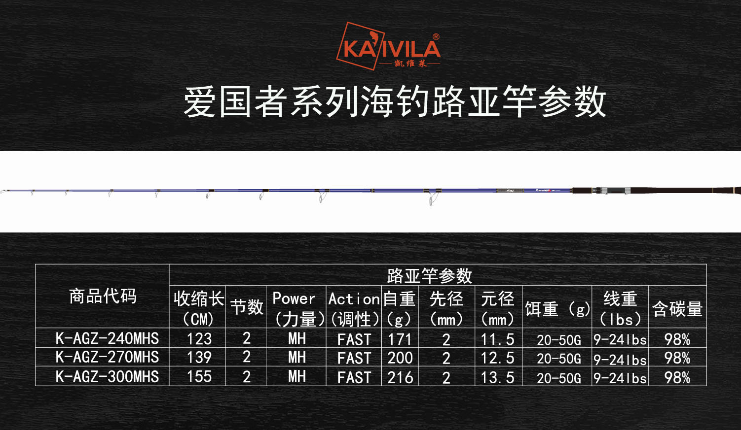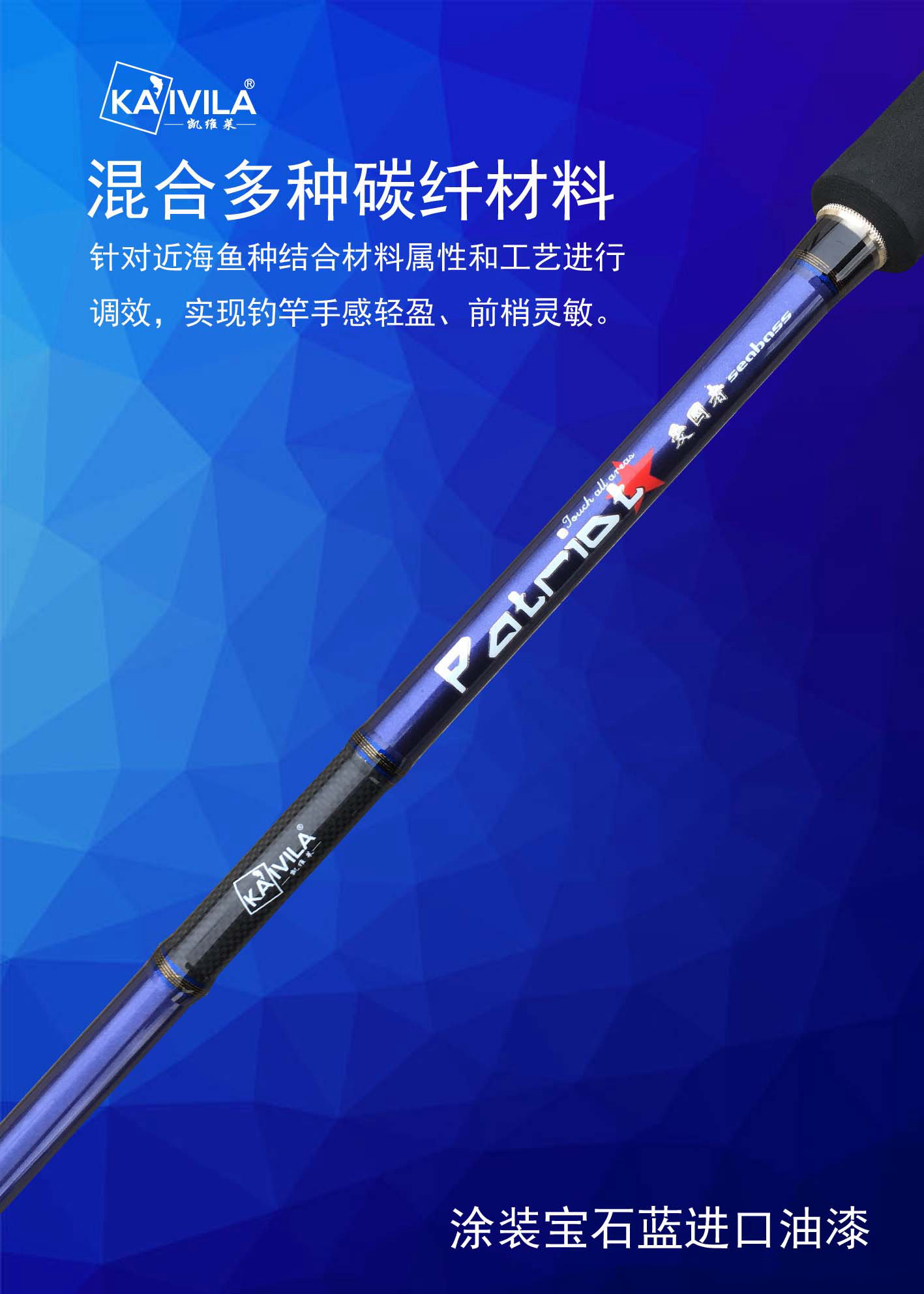 主要针对鱼种:海鲈、鲅鱼、带鱼等,其设计强度主要针对对海鲈,为一款近海路亚综合竿。