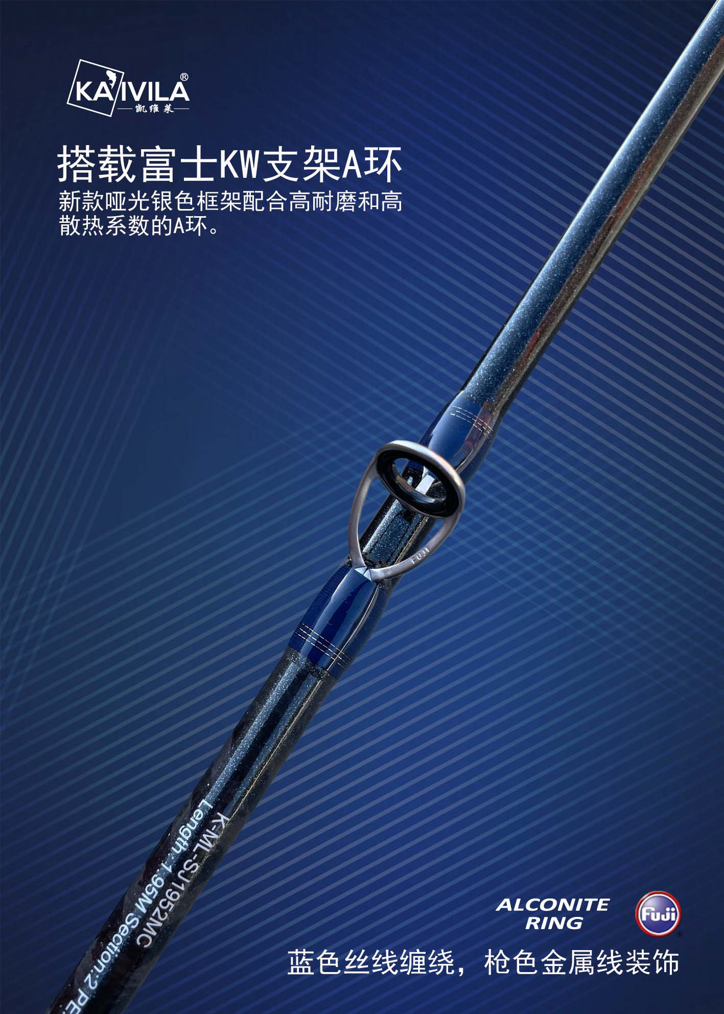由于慢摇铁板钓法对钓竿的要求较高,此款产品搭载日本富士2023年度新款KW框架A环导环,更加抗腐蚀;采用日本富士海钓加强型轮座;采用四轴交叉碳带布对素材局部和把手节进行二次加强;整竿轻盈、持感舒适、曲线过度顺畅。