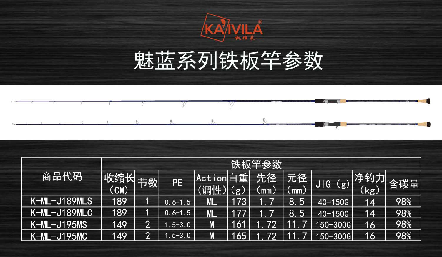 鲅鱼专用型号,适合轻量铁板的纤细竿身拥有高广泛性,克轻松操控40-150克的铁板。